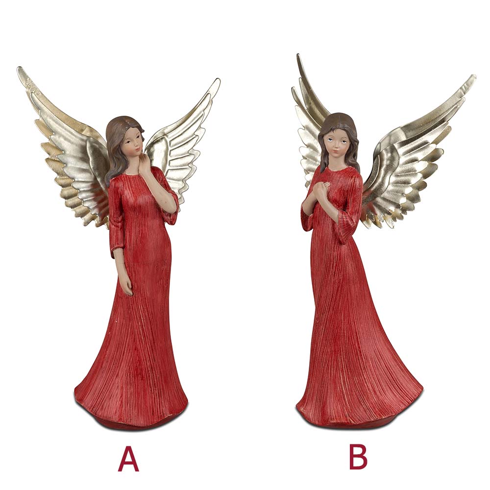 Engel stehend 19 cm rot-gold Klassik aus Kunststein mit Metall-Flügeln von formano