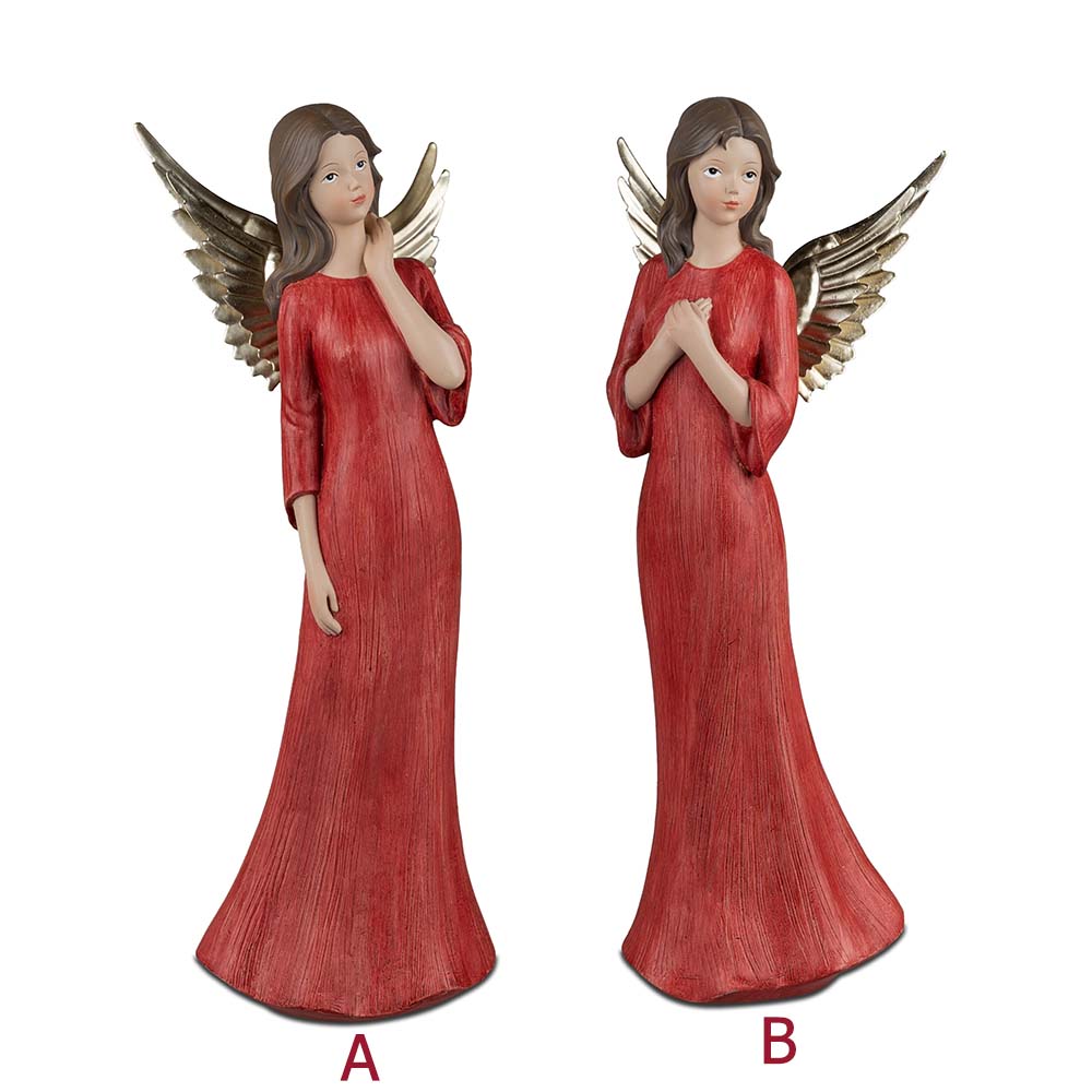 Engel stehend 30 cm rot-gold Klassik aus Kunststein mit Metall-Flügeln von formano