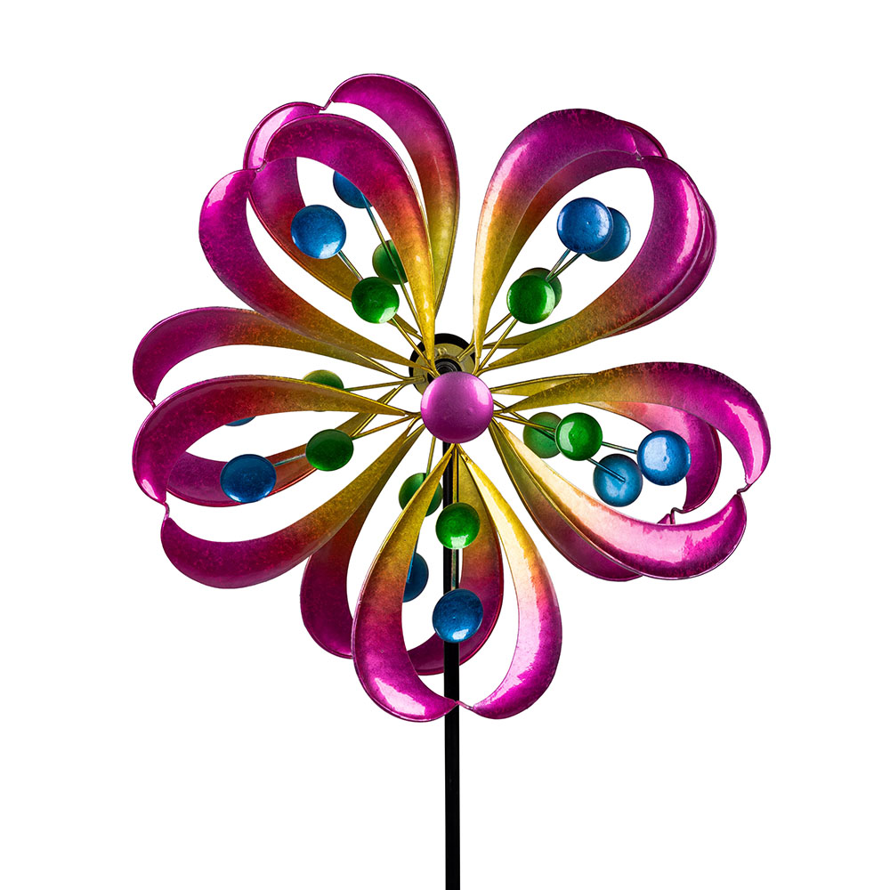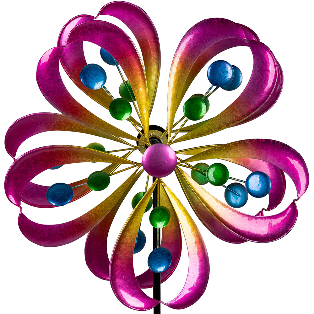Gartenstecker Windrad 39/128 cm mit Kugellager bunt aus Metall formano