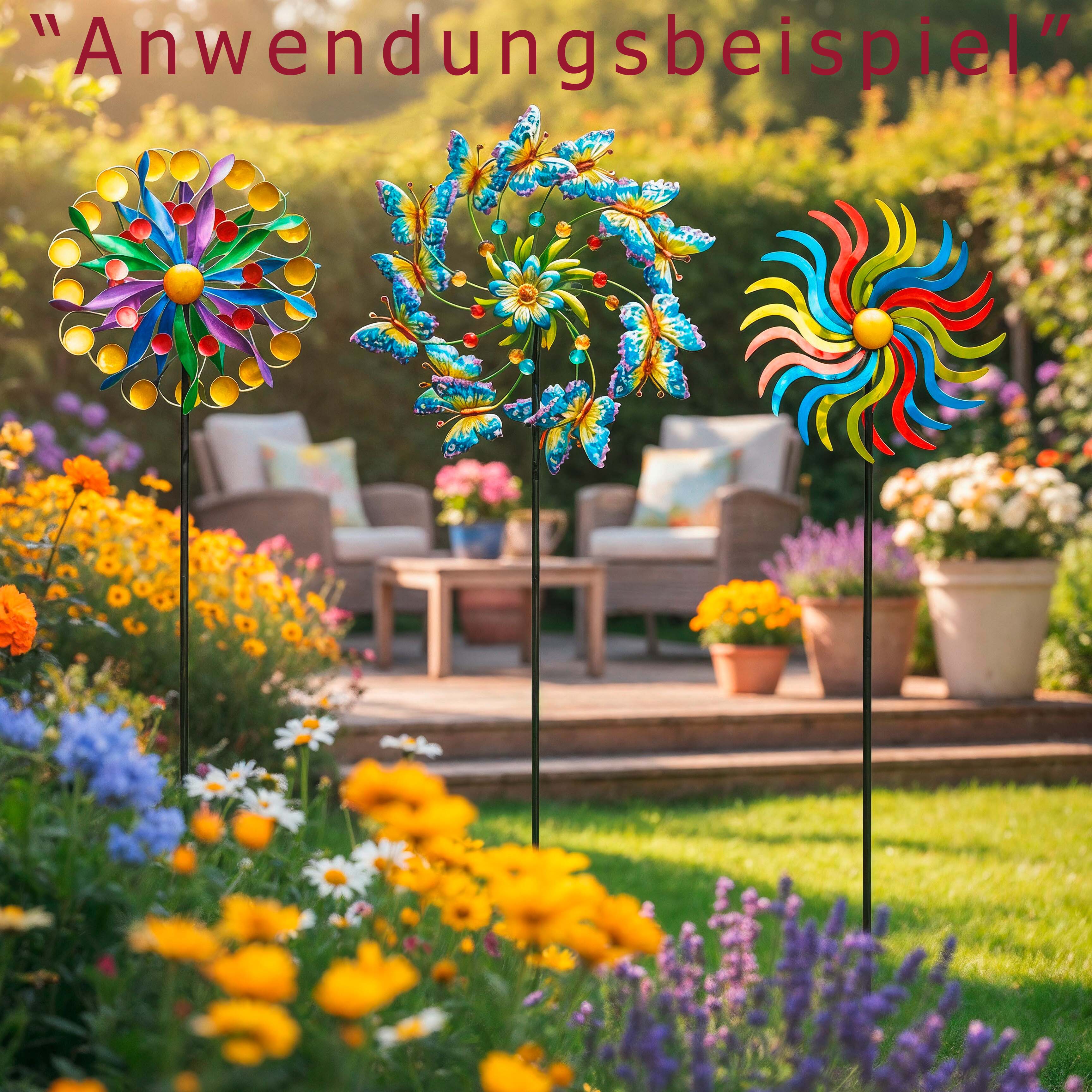 Gartenstecker Windrad Schmetterlinge 45/131 cm mit Kugellager aus Metall formano