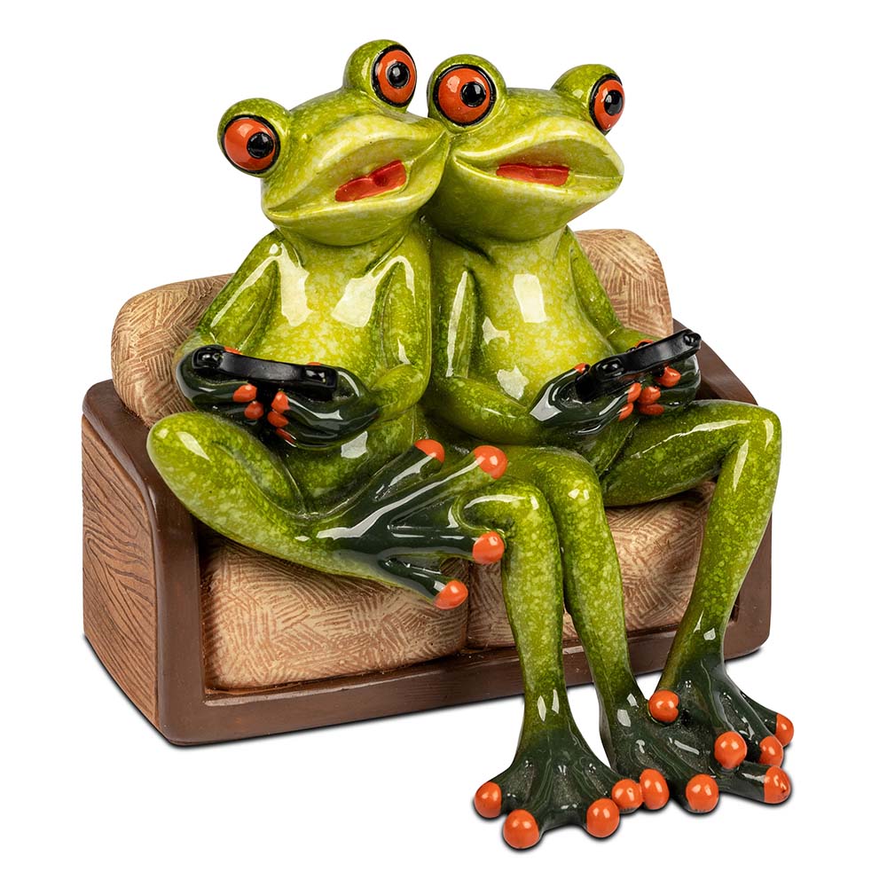 Trendig Witzige Deko-Figuren aus Froschhausen zur Auswahl aus Polyresin ( Kunststein ) gefertigt und mit glänzender, handbemalter Oberfläche veredelt und mit Details verziert. Viele liebe Frösche bei denen man den Alltag oder sein Hobby wiederfindet z.B. der Frosch in Hängematte, Paddel, auf Blatt, Reggae, Gaming, Handyhalter, Boss, Flugzeug, Oldtimer, mit Zeitung auf Toilette, Börsen-Makler, Angler-Frosch auf Schnecke, Bad-Finger, Beauty, Glücksbringer Schornsteinfeger, Glücksschwein, Schlafmütze, vor Toilette, Eishockey-Spieler, Football-Spieler, mit Burger, mit Zelt, Faschingsfrosch, Froschpaar mit Camper, Frosch reitet auf Schnecke, Frosch beim Einkaufen mit Einkaufswagen, Froschpaar mit Herz, Moin mit Ente, Schwarzwald oder Flaschenhalter. Auch eine Dekofigur für alle Campingfreunde. Die kleinen Frösche aus Kunststein haben die grandiosesten Ideen und sind stets zu den tollsten Späßen aufgelegt. Und genau deshalb sind sie ein tolles Mitbringsel, das bei Freunden und Bekannten, zum Einzug ins neue Heim oder auf der Junggesellenparty garantiert für eine freudige Überraschung sorgt.
