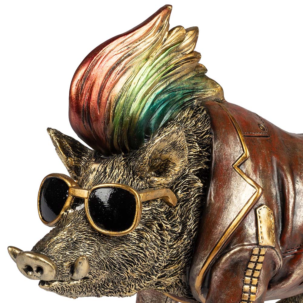 Wildschwein mit Sonnenbrille 32 cm aus Kunststein mit antik-goldener Oberfläche und handbemalten Reliefs veredelt und mit Details verziert von formano. Was für eine coole Sau in Lederjacken Optik.Ein tolles Mitbringsel, das bei Freunden und Bekannten für eine freudige Überraschung sorgt oder ein schönes Geschenk. Ein Eber für alle Fälle. Auf Bild 3 sehen Sie ein Anwendungsbeispiel für weitere Dekorationsmöglichkeiten.