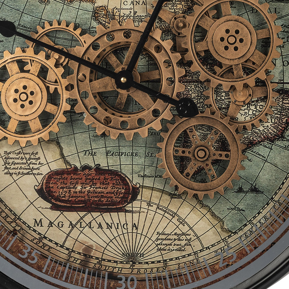 Wanduhr Weltkarte 60 cm Zahnrad Bewegung aus Metall formano