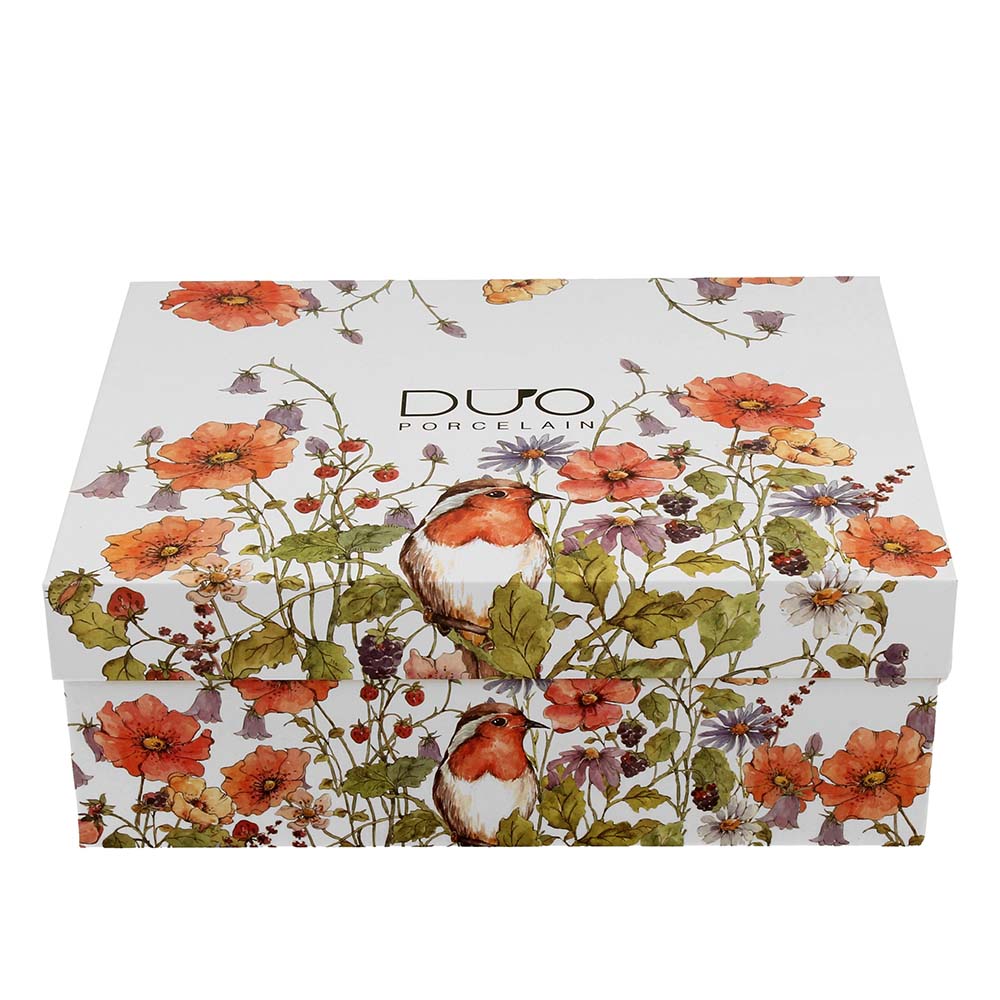 Espressotassen 2er Set mit Unterteller Wild Bird ( Wildvogel ) aus New Bone China Porzellan von DUO Sp. z o.o. ist eine schöne Tasse auch für den Sammler. Die Tasse ist für Espressoliebhaber und Kaffeetrinker geeignet aus der Kollektion Flower Classic im Geschenkkarton. Das Dekor zeigt eine bezaubernde Frühlingsblumenwiese, die einen kleinen Vogel umgibt. Die zarten, dezenten Farben zeichnen die Kollektion aus. Die klassische, runde Form der Tassen kombiniert mit Untertassen lässt das Geschirr auf jedem Tisch gut aussehen.
