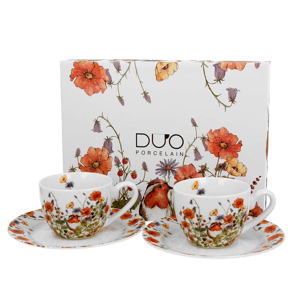 Espressotassen 2er Set Wild Bird mit Unterteller DUO Porzellan