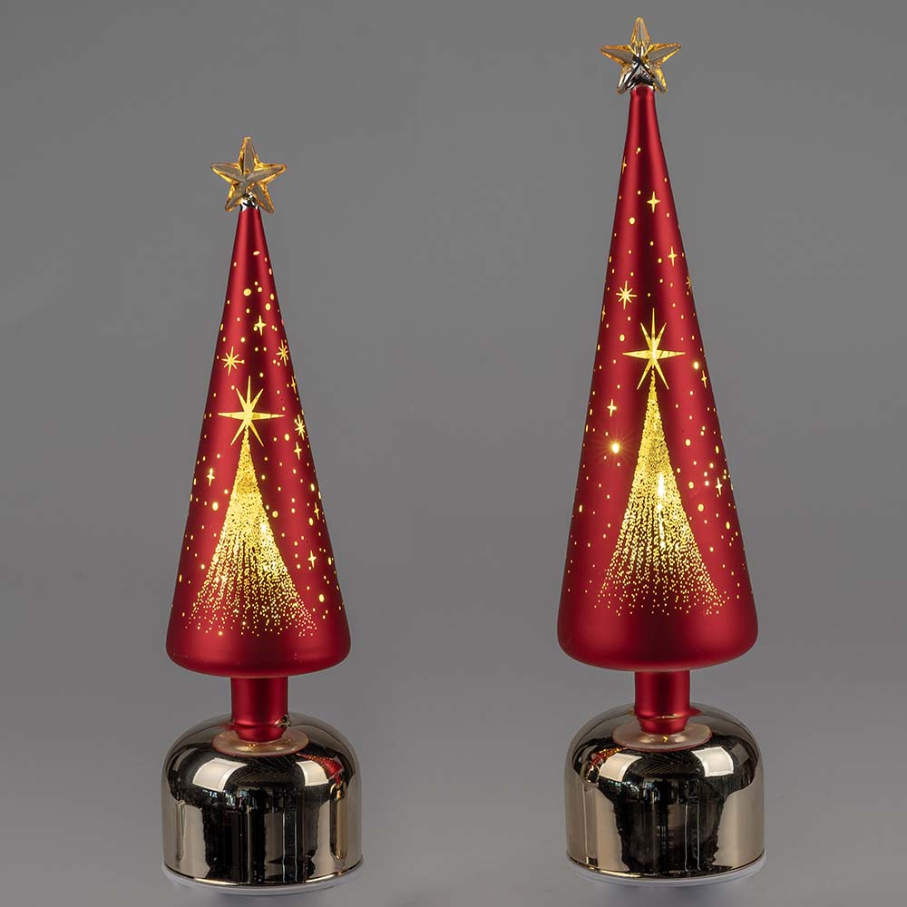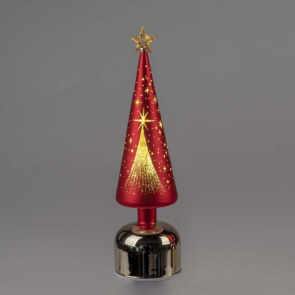 Dekobaum drehend 33 o. 38 cm rot-gold LED-Licht + Timer aus Glas von formano