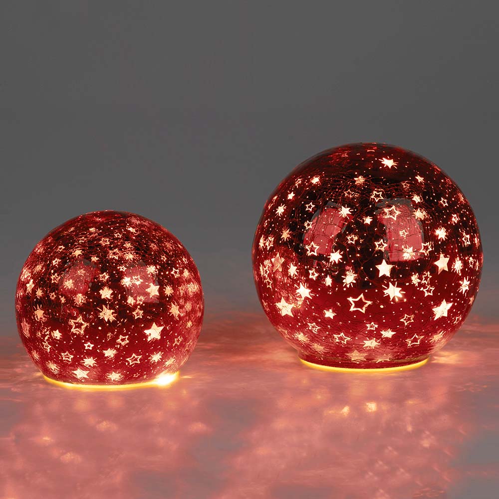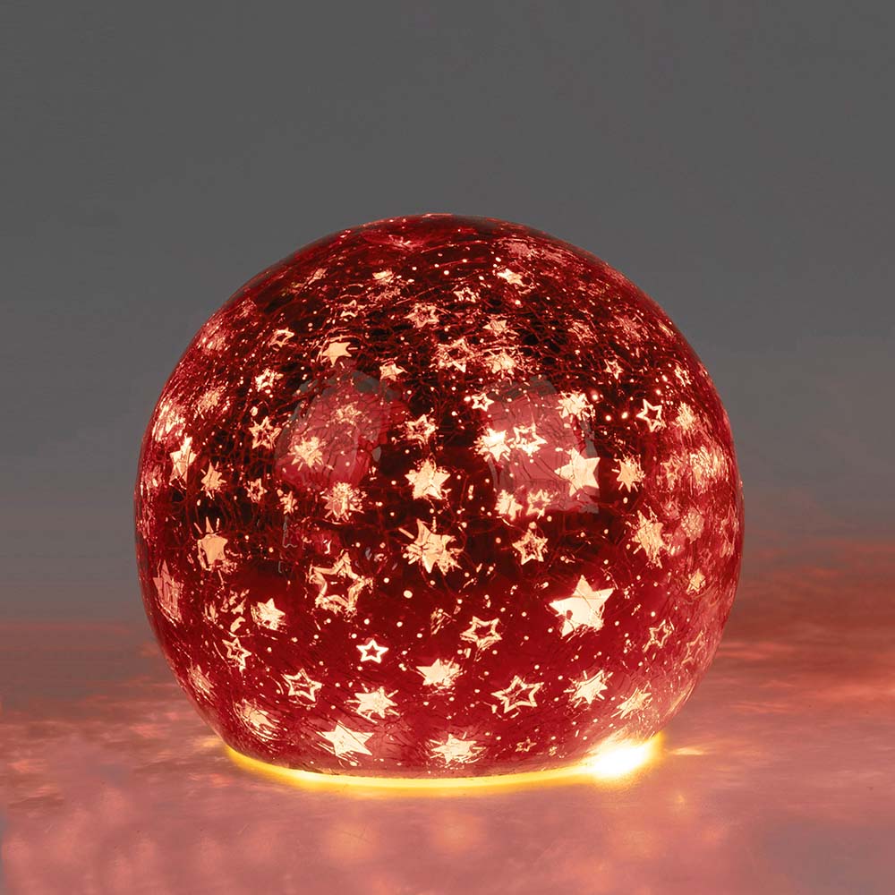 Deko-Kugel Sterne-Rot mit LED-Licht aus Farbglas von formano