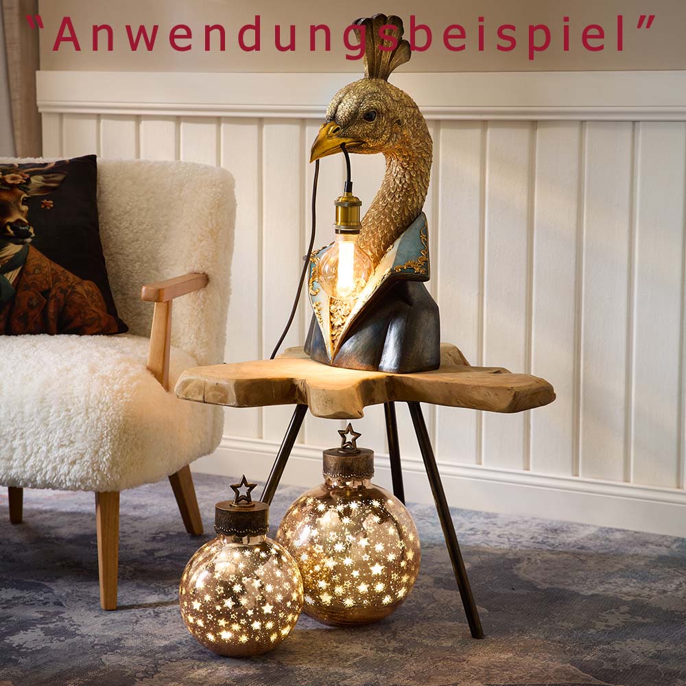 Deko-Kugel Sterne Rose-Gold mit LED-Licht in 28 cm oder 33 cm aus glänzendem Farbglas in Crackle-Optik mit aufgesetztem Stern; inklusive Timerfunktion. Die Dekokugel ist eine originelle Dekoidee für Ihre Advents- und Weihnachtsdeko aus dem Hause formano. Auf Bild 4 sehen Sie ein Anwendungsbeispiel für Ihre Dekorationsmöglichkeiten.