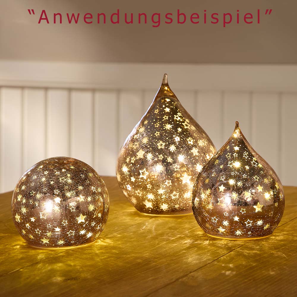 Deko-Tropfen Rose-Gold Sterne mit LED-Licht aus Farbglas von formano