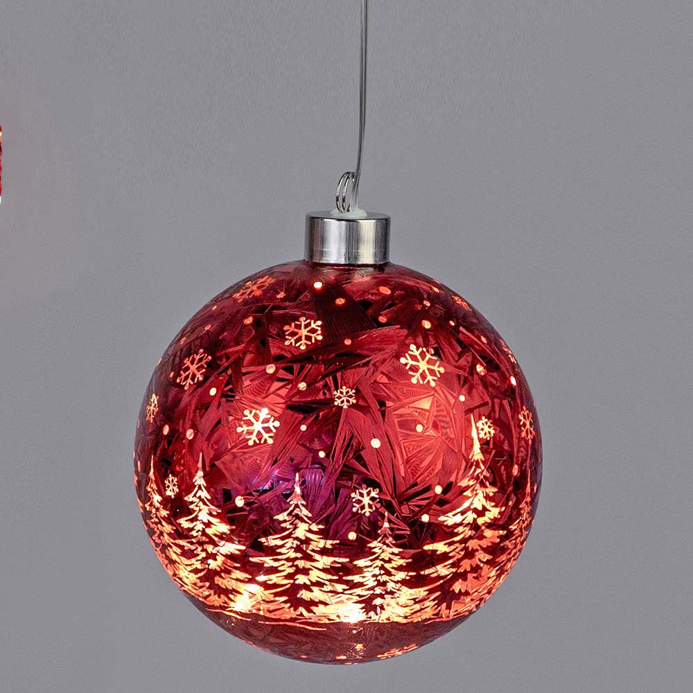 Hänger Kugel Frosty-Rot mit LED-Licht Tannenbäume aus Farbglas von formano