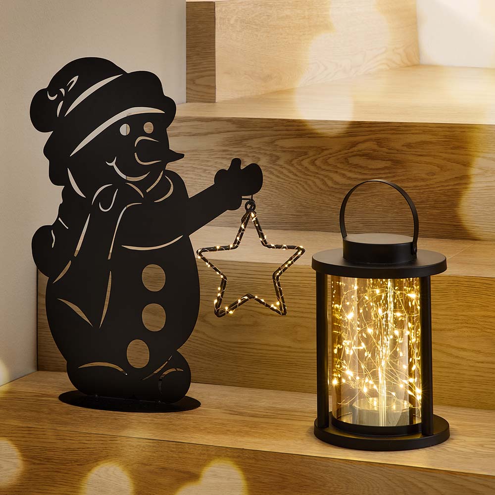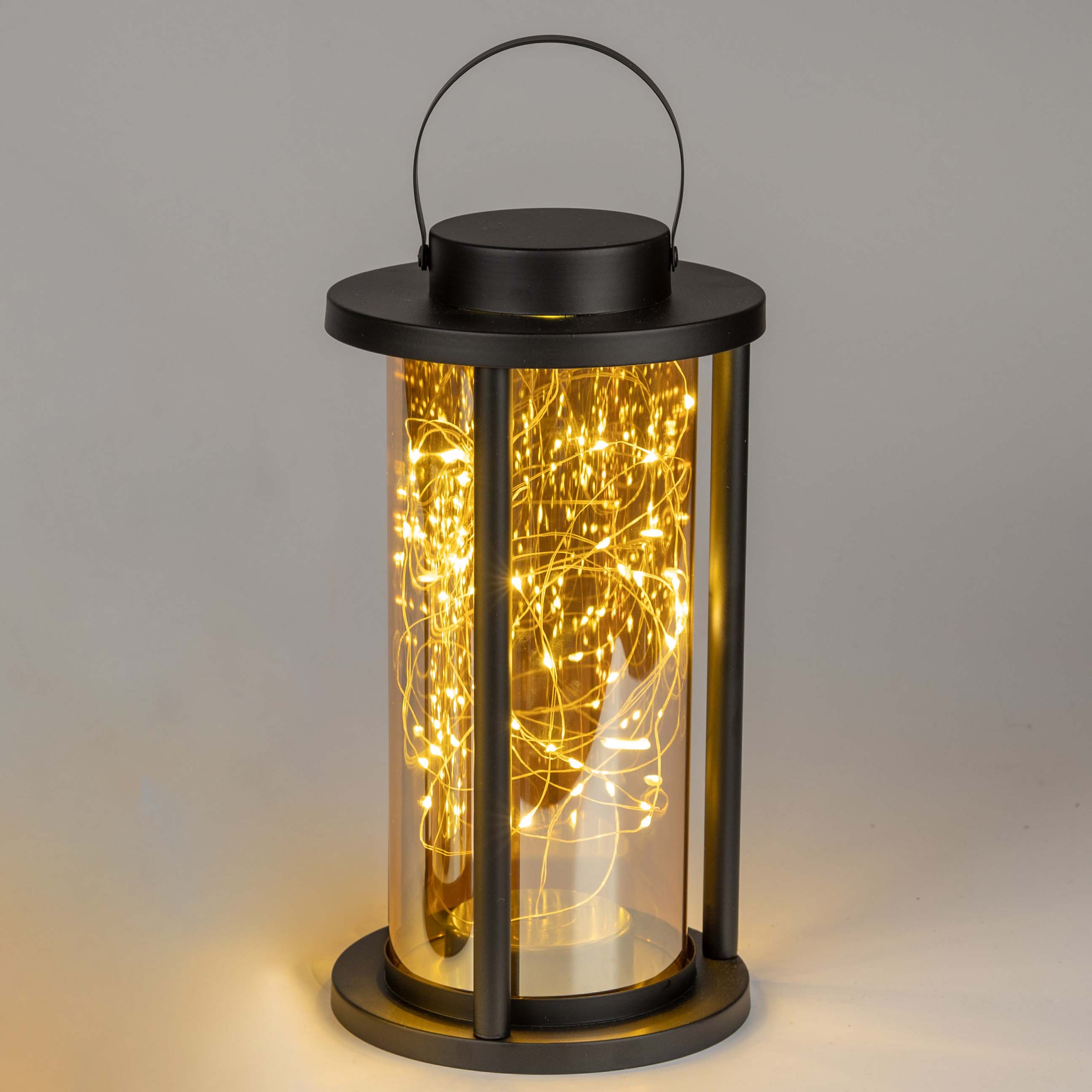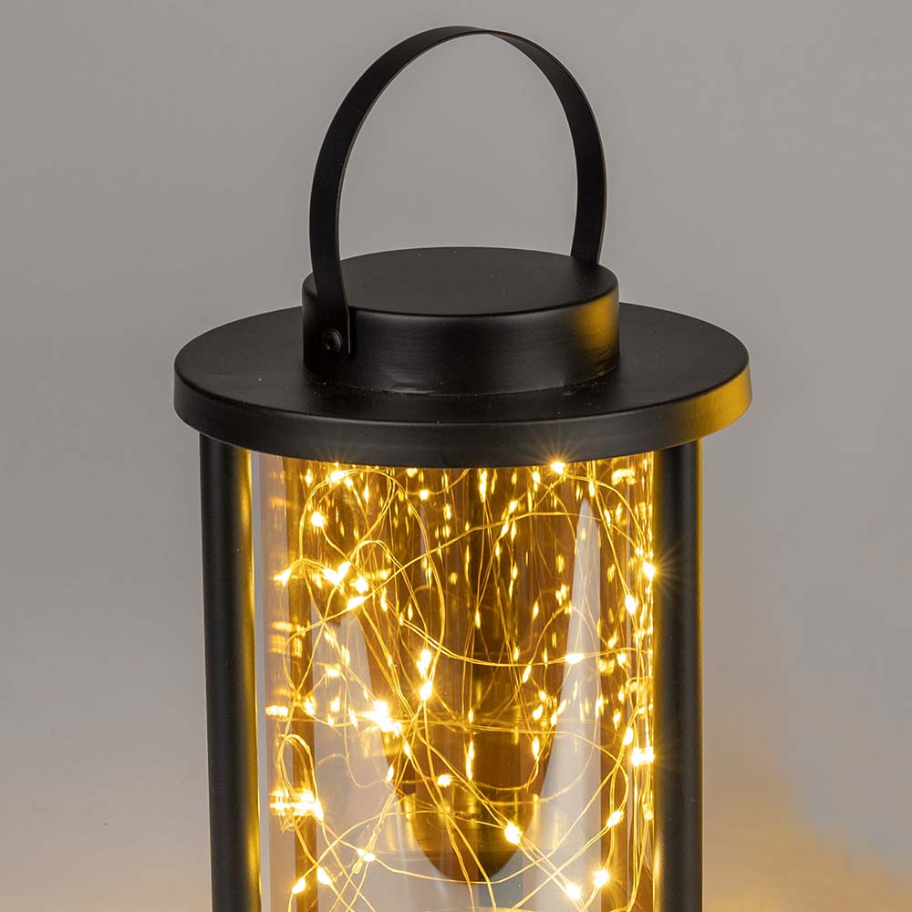 Laterne rund 17 x 32 cm mit Henkel 40 cm Gesamthöhe aus schwarzem Metall mit klarem Glas und LED-Lichterkette + Timer von formano. Die Laterne ist eine perfekte Beleuchtung in Ihrer Winter- und Weihnachtsdeko stehend oder hängend nutzbar. Auf Bild 3 sehen Sie ein Anwendungsbeispiel für Ihre Dekorationsmöglichkeiten.