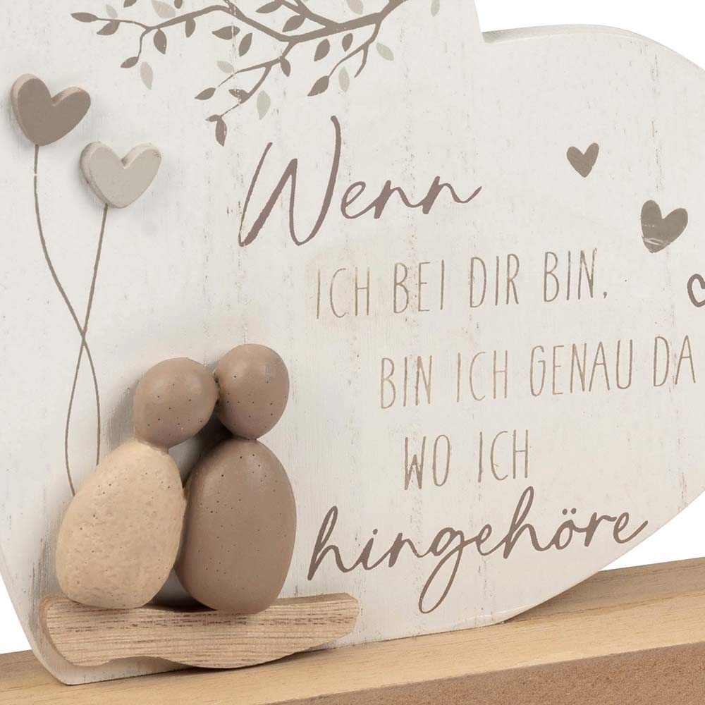 Ein Deko-Herz stehend 20 x 18,5 cm aus Holz gefertigt, handbemalt und mit Spruch ( Wenn ich bei Dir bin. Bin ich genau da, wo ich hingehöre ) + Kunststein-Figuren verziert von formano. Herzensworte die bleiben. Liebevolle Botschaften schenken Wärme, heißen Gäste willkommen und sind eine schöne Idee zum Verschenken. Deko-Objekt Herz als Geschenk zur Hochzeit oder zum Valentinstag für verliebte Liebespaare oder einfach nur so.