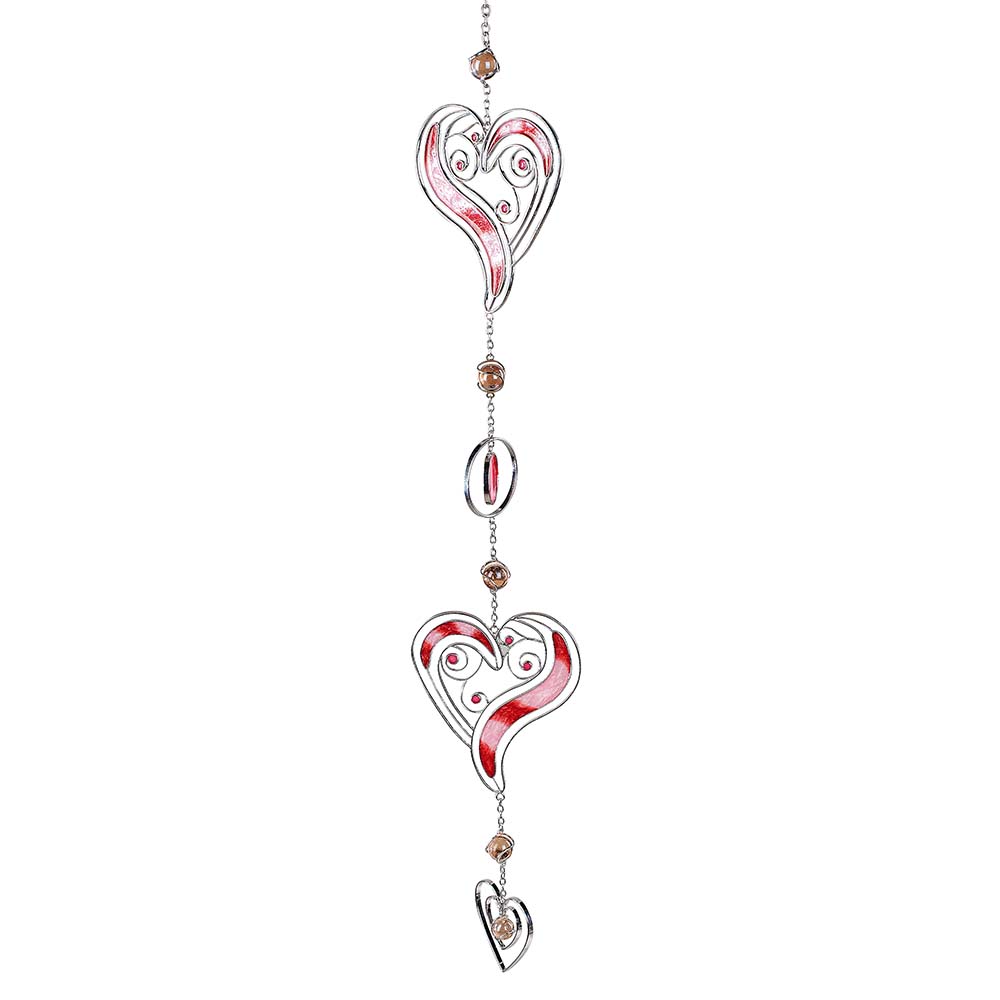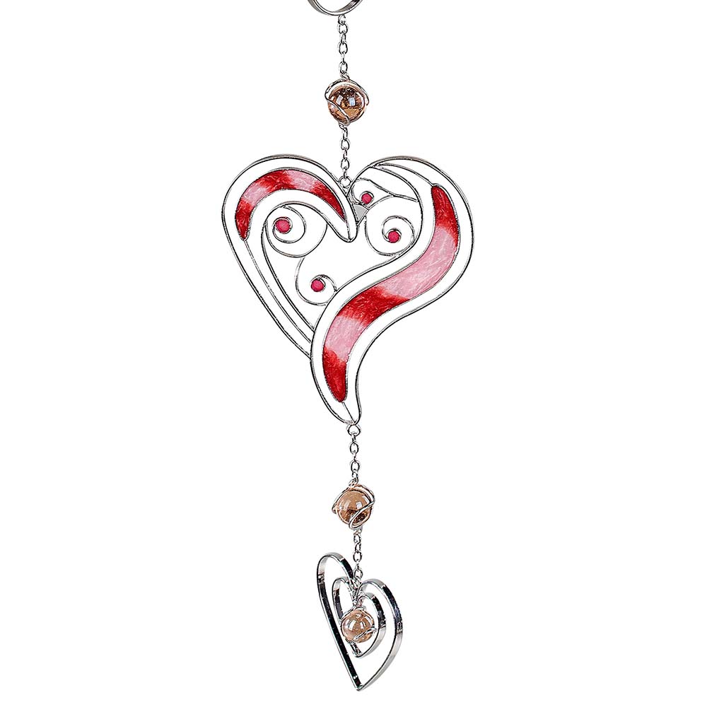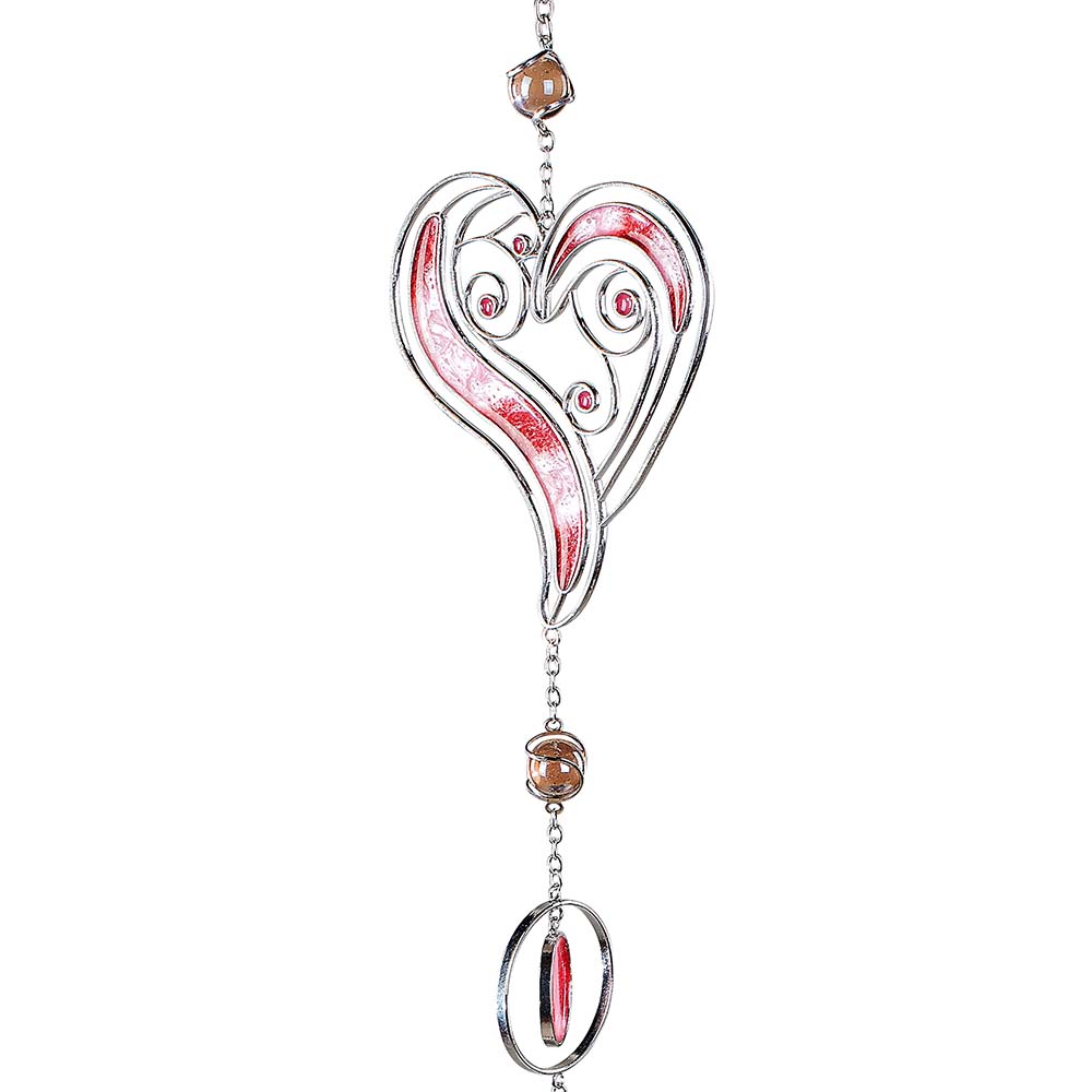 Hänger 3 Herzen aus silbernem Metall mit farbigem, lichtdurchlässigem Acryl kombiniert. Bei den Deko Hänger Herz als Fensterschmuck hat eine Gesamtlänge von 68 cm und sind passend für eine farbige Fensterdekoration als toller Blickgfang von formano.